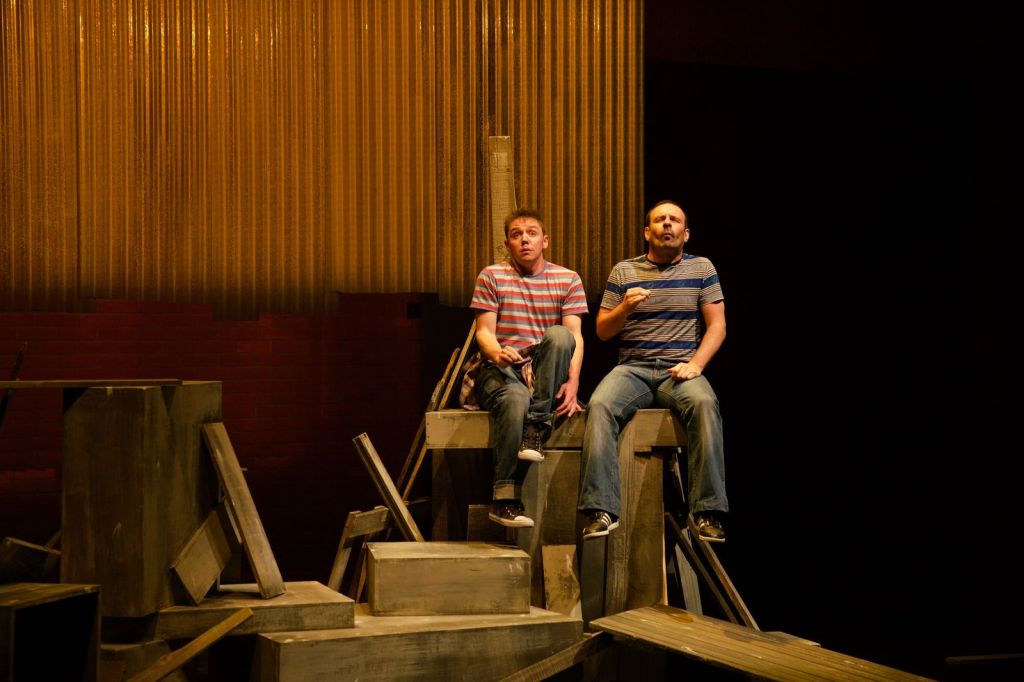 What made this such a special night, and not just the fact of being in a theatre; it’s the energy of hearing Adidas Sambas screech on a wooden floor, feet banging up planks, hearing a messed up beginning of a line, laughter in unison, the taut nature of two actors at full throttle. That’s what made last night super special.