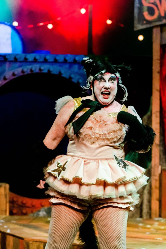 Every show needs a villain, enter Swallowfire, played by Allison Harding. Boot-camp material here. She runs with both a beard and hardened muscle to control the frightened performers with an iron fist. This lady is not for turning, but will her comeuppance be realised?