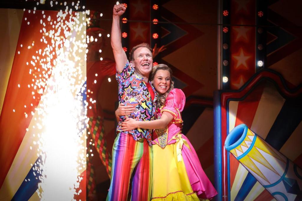The plot is not in the slightest mentally taxing, we’ve kids of all ages to provide for here. Dame May McFetty and ringmaster hubby Paddy’s – played by long-term McFettridge acting partner Paddy Jenkins – circus is in financial quandary and there’s a new company in town. That of the annual necessary panto baddy, who this year is the entrancing and equally vile Countess Von Winklebottom. Anne Smith’s German accent is a joy to be hold, but a new one to me and I expect many panto lovers is hearing nearly 800 Northern Irish shout ‘Oh, no you von’t!’ back at our scheming Countess. As always with a McFettridge show, audience participation is upfront and ballsy – pardon the pun – as get out
