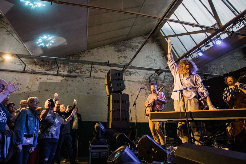 Led by the beyond charismatic Liam O’ Maonlai, the five piece shake the Banana Block to its core. The audience, and I’m not being rude here, mostly in its 40s – 50s, immediately connect with this shamanic figure and his troop of merry pipers. We’re led this way and that, from out and out rock n roll of Give It Up to the gospel like You Can Love Me Now and we love every second.