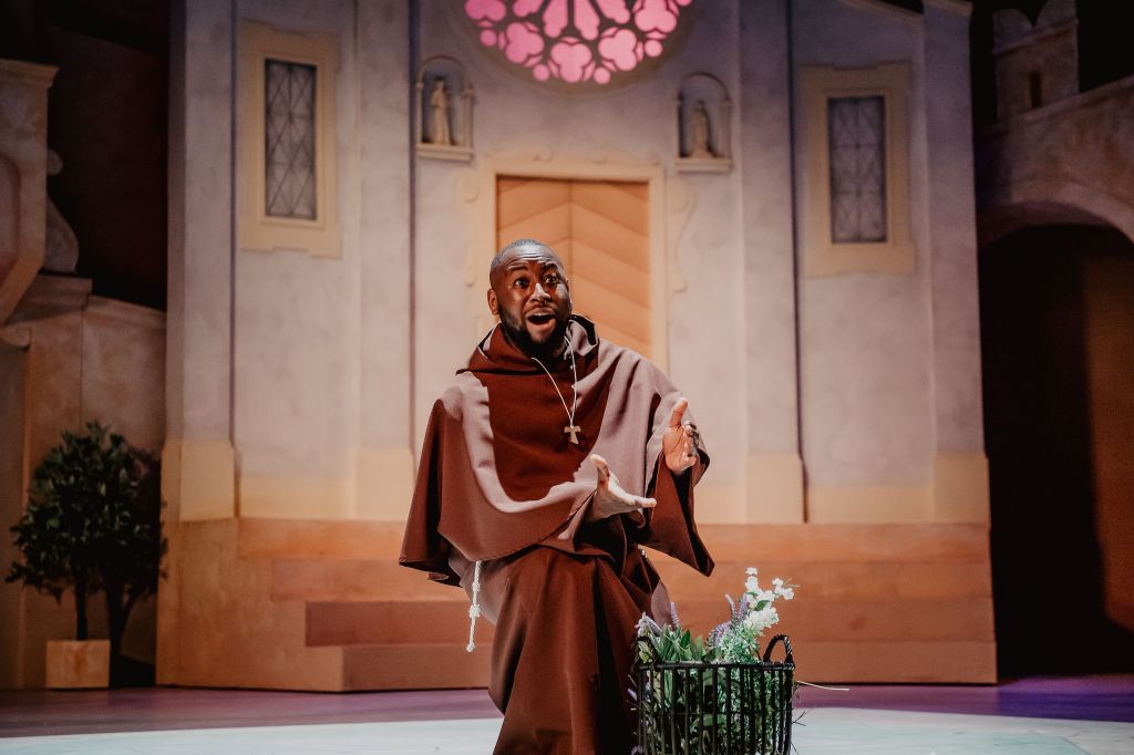 From taking our seats it was obvious this was going to be a sumptuous affair. Set designer Robin People’s set is truly pleasing on the eye. Yet, it is easily adapted. From Verona town centre, to ballroom, bedroom and mausoleum, this luxurious set morphs into each scene with minimum effort and maximum effect.