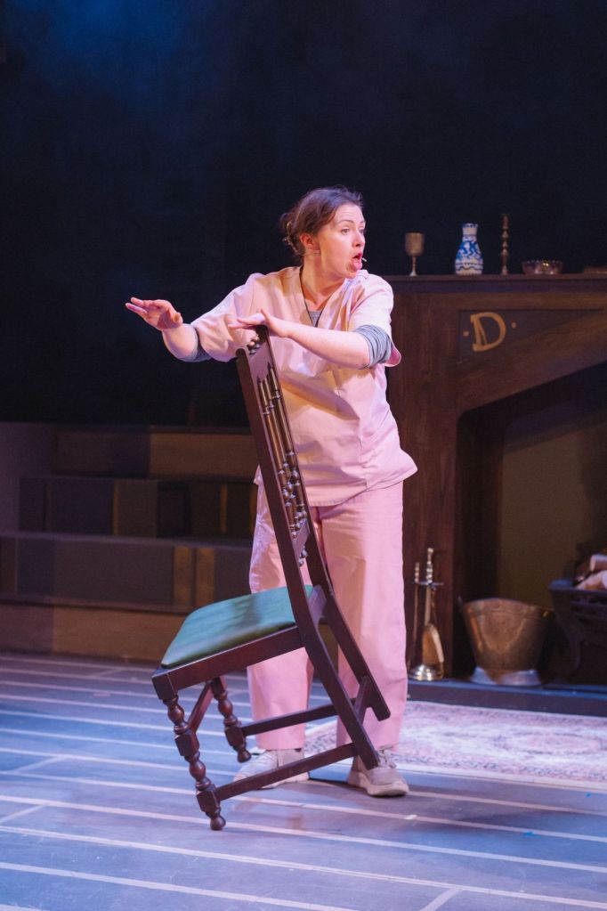 As the tale unfolds with equally humorous and at times confusing plot turn, time travel and flashbacks, one thing that can’t be argued is that when Grimes and McKee are in the writing of the show, they must’ve had a good laugh. Toby on regaling on his ancestors – “The Darkwoods have been here since the Norman conquest you know!” – gusto during the Cromwellian invasion, Grimes pops in with, “Aye, even Oliver Cromwell thought they were a bit much.” All these little laughs guarantee a lively night of theatre.